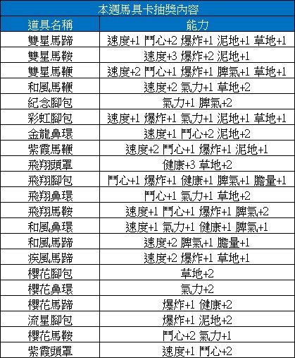 1.幸運大抽獎 - 馬具卡 內容更新
